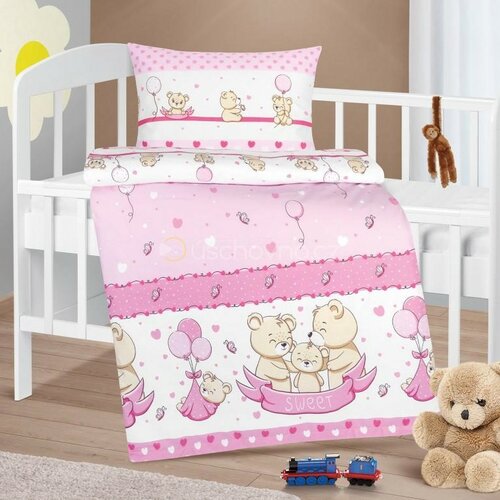 Bellatex Dětské bavlněné povlečení do postýlky Agáta Medvědí rodinka, 90 x 135 cm, 45 x 60 cm