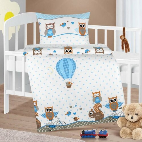 Bellatex Dětské bavlněné povlečení do postýlky Agáta Sovička modrá, 90 x 135 cm, 45 x 60 cm