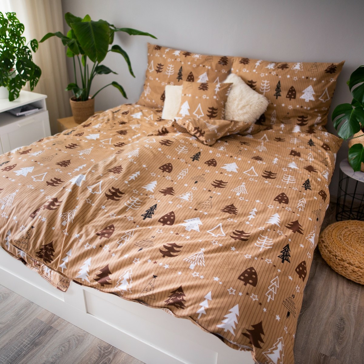 Jahu Bavlněné povlečení Dita Stromy hnědá, 140 x 200 cm, 70 x 90 cm + 40 x 40 cm