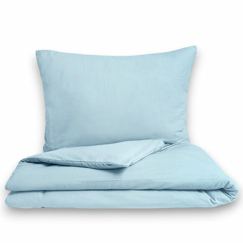 Světle modré flanelové povlečení je vyrobeno z velmi hřejivé bavlněné tkaniny vyšší gramáže a flanelové úpravy. Měkký a heboučký flanel vám zároveň zajistí pocit tepla především v zimních měsících. Flanel je charakteristický vysokým vlasem, který vznikne počesáním na povrchu tkaniny. Podle toho flanel poznáte na první dotek. Na rozdíl od polyesteru má 100% bavlna vysokou hřejivost, je příjemná na omak, prodyšná a především dobře odvádí vlhkost. Před prvním použitím prosím povlečení vyperte. Rozměry povlečení jsou uváděny již po vysrážení, kde je nové povlečení vyrobeno s rozměrovou rezervou. Srážlivost bavlněných tkanin patří k běžným vlastnostem. Dodržujte prosím symboly údržby uvedené na textilní etiketě na výrobku. Nedoporučujeme ložní prádlo sušit v sušičce, ale pokud přesto chcete použít sušičku, zvolte delší program s nižší teplotou sušení. Určitě povlečení perte, sušte a žehlete naruby. Žehlit povlečení doporučujeme v mírně navlhčeném stavu, protože přeschlé povlečení se vám bude velmi špatně žehlit.