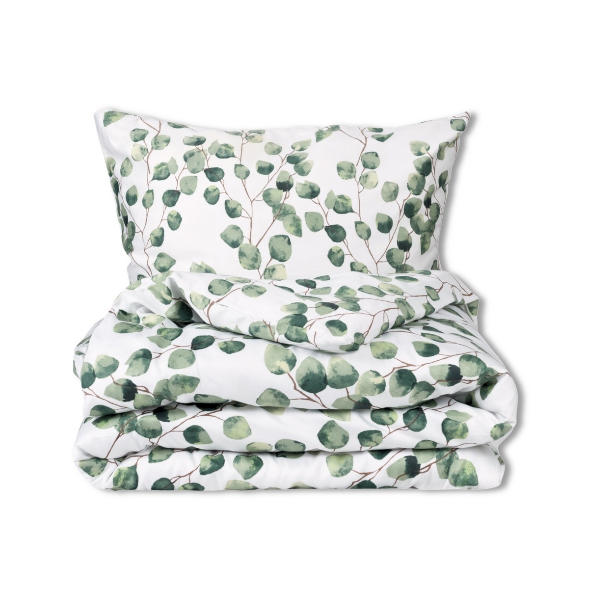 Matex Saténové povlečení Listy eukalyptu akvarel, 140 x 200 cm, 70 x 90 cm