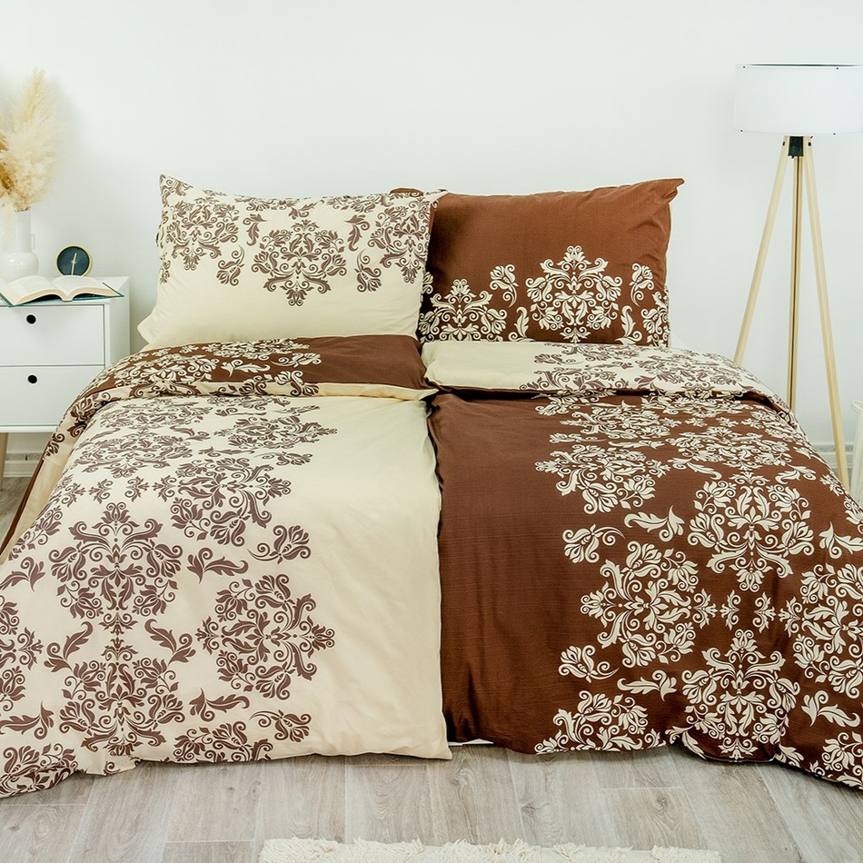 Rafinovanost a působivý design na dokonale sladěném oboustranném povlečení. S tímto oboustranným vzorem můžete libovolně měnit vzhled. Nové moderní trendy v hnědé a béžové barvy vnesou energickou atmosféru do vašeho interiéru. Povlečení perte naruby, bez bělidel a chemických čistidel. Souprava obsahuje: 1x povlak na polštář 70 x 90 cm 1x povlak na přikrývku 140 x 200 cm