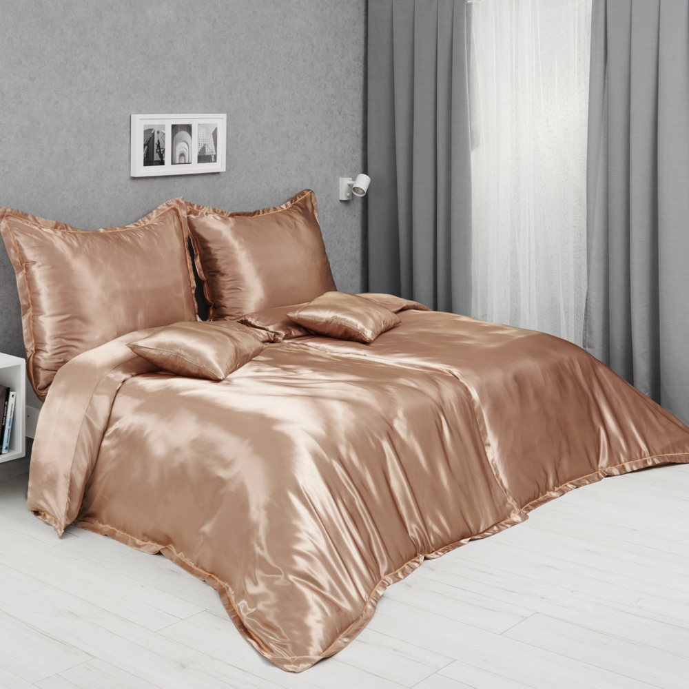 TP Třídílná sada saténového povlečení 140×200+70×90+40×40 – BÉŽOVÁ